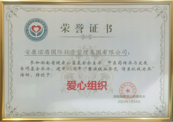 ▲安康諾盾集團(tuán)被評(píng)為“愛心組織”